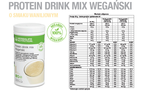 * Nasz produkt zapewnia pełne korzyści odżywcze opisane na etykiecie tylko wtedy, gdy jest przygotowany zgodnie z instrukcją podaną na etykiecie. Pamiętaj, że użycie produktu Herbalife Nutrition w przepisie wymagającym podgrzania może spowodować obniżenie zawartości niektórych witamin w gotowym daniu w porównaniu z wartościami podanymi na etykiecie.